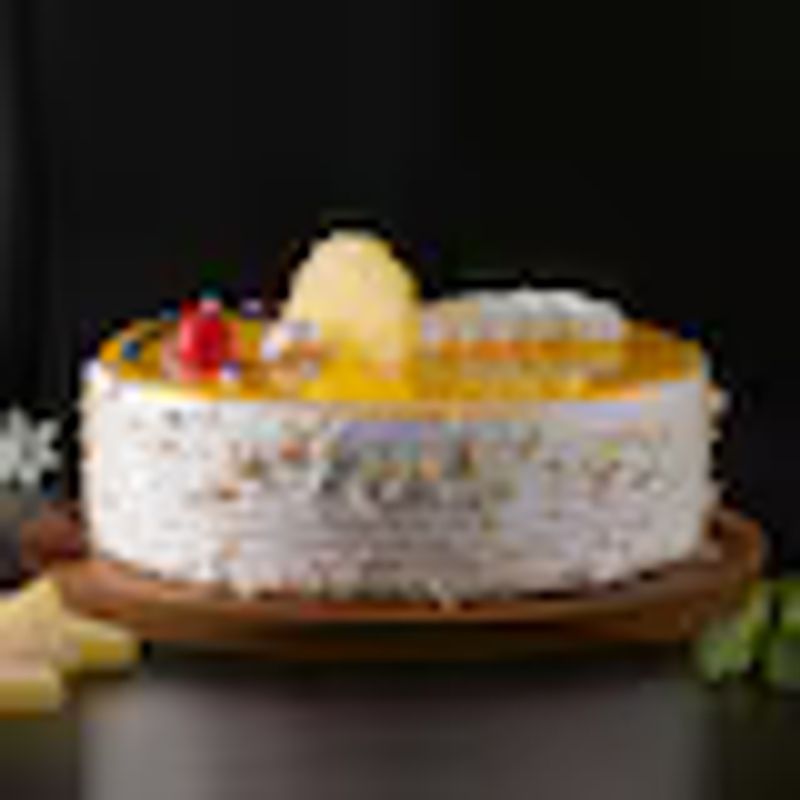 Cake Flavour: Pineapple , Shape: Round , Type of Cake: Cream , Type of Sponge: Vanilla , Type of Cream: Vanilla , Filling in Layers: Pineapple , Toppings: Cream , Chocolate , Pineapple , Almond... Cake Flavour: Pineapple , Shape: Round , Type of Cake: Cream , Type of Sponge: Vanilla , Type of Cream: Vanilla , Filling in Layers: Pineapple , Toppings: Cream , Chocolate , Pineapple , Almonds , Silver Pearls & Cherry Garnish Read More